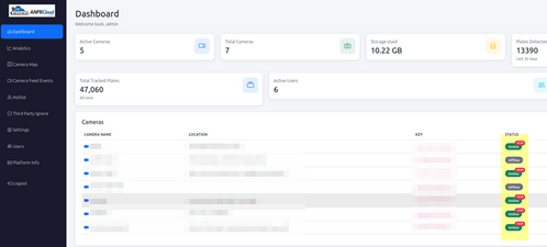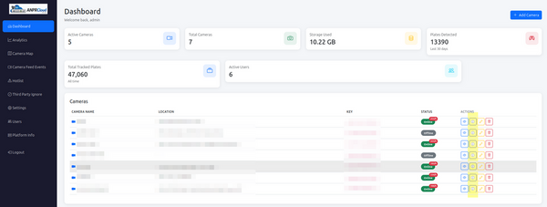 ANPR-CLOUD is a cloud-based Automatic Number Plate Recognition (ANPR/LPR) platform that receives, processes, and analyses vehicle detection events from supported cameras.