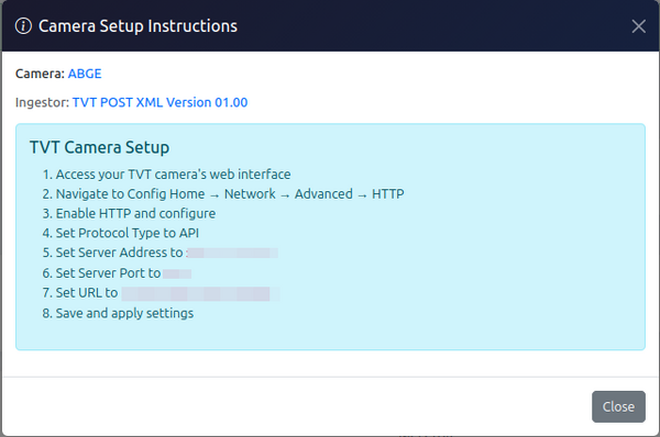 - ANPR-CLOUD ingestion URL and API key